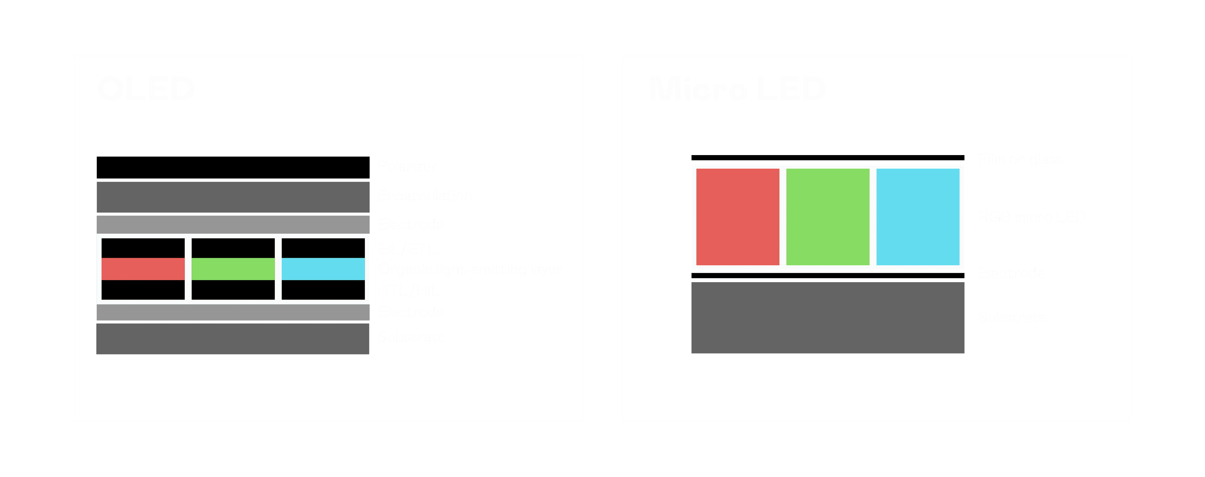 以 LED 做为显示画素,,可让 LED 的发光效率发挥到极致,,从而让显示器具备优异的亮度表现,,,,不论是在户外或室内,,,均具备出众的显示效果。。。。同时,,,,与使用有机材料的 OLED 相比,,,LED 具备更稳定、、、寿命更长的特性,,不仅不会有画面烙印问题,,而且更不容易出现故障、、坏点。。。