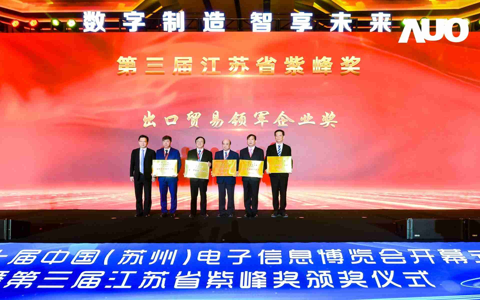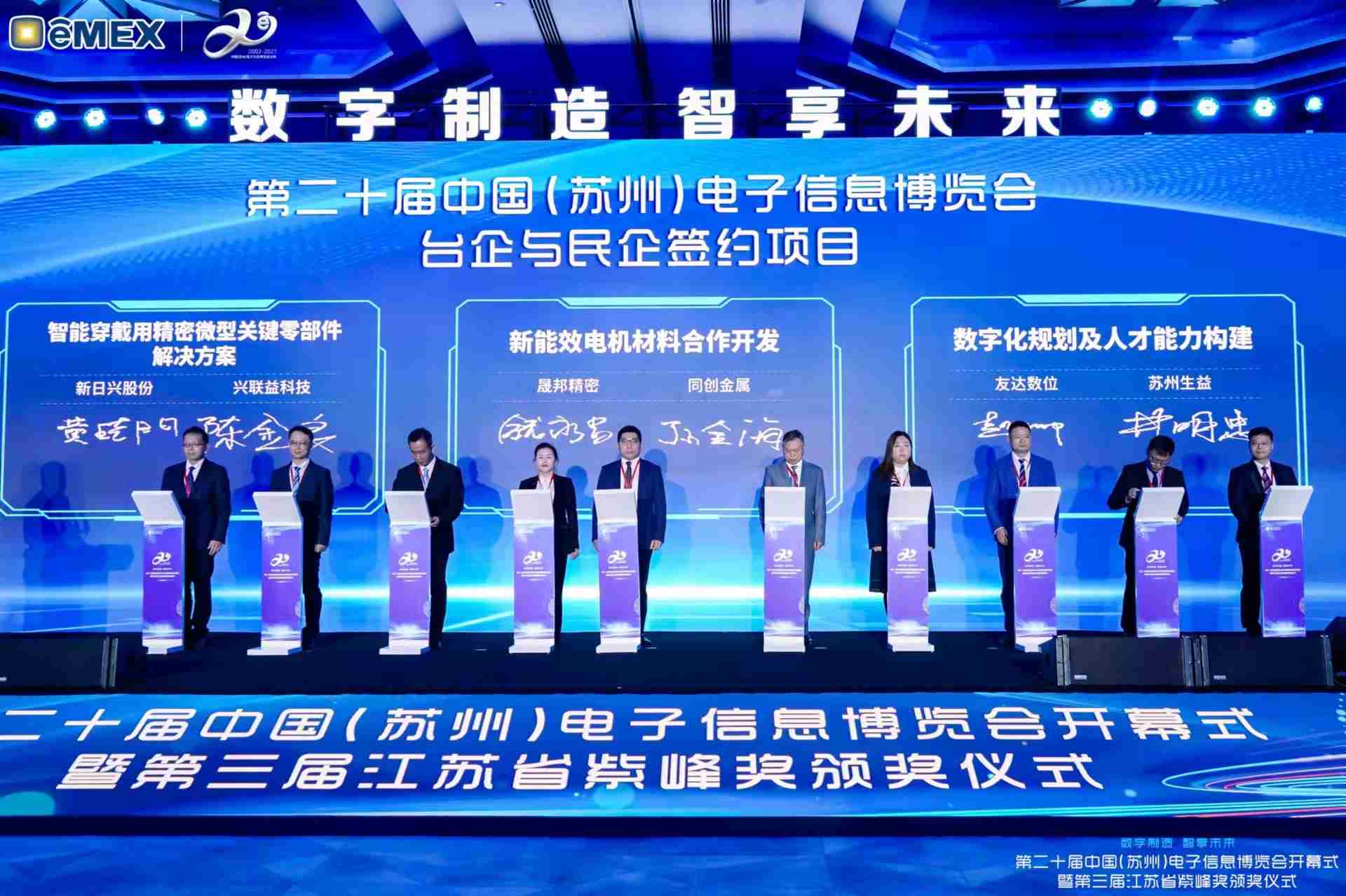 电博会开幕式当天也是第三届江苏省紫峰奖颁奖仪式,,,,省台办、、、工信厅、、、商务厅、、、苏州市相关领导均出席并颁奖。。。。该奖项为表彰对江苏高质量发展做出积极贡献的在苏企业,,,,由江苏省政府专门设立。。william威廉中文官网光电 (苏州) 总经理郭振明代表上台领奖,,这也是william威廉中文官网苏州连续三次蝉联紫峰奖 出口贸易领军企业奖。。william威廉中文官网数位总经理赵丽娜女士,,,也参与本次开幕式,,,,上台为本地化赋能签署战略合作协议,,,,将优质服务资源集合、、、下沉到更多细分行业,,,为更多地区的制造企业提供数字化转型服务。。。。