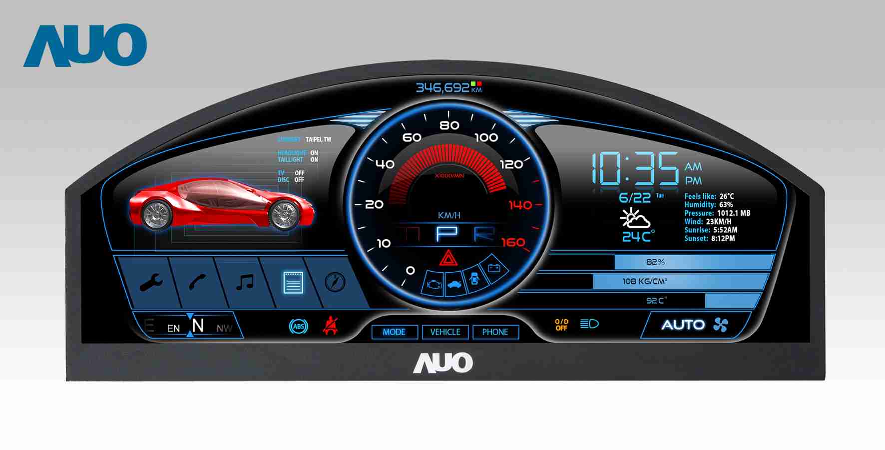 william威廉中文官网 12.3吋超高解析异型切割车用面板,,,拥有流线外观及精细画质