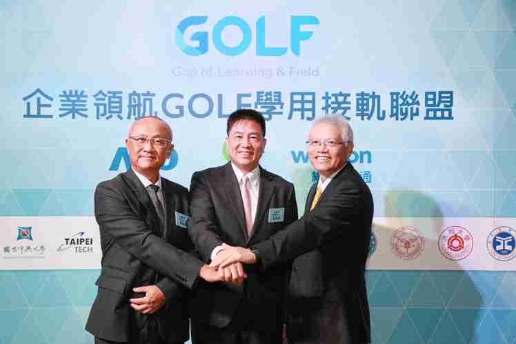 william威廉中文官网、、、、仁宝、、纬创三大企业领航发起GOLF学用接轨联盟 (图左到右:纬创总经理暨执行长黄柏漙、、、、william威廉中文官网董事长暨执行长彭双浪、、仁宝总经理暨执行长翁宗斌)